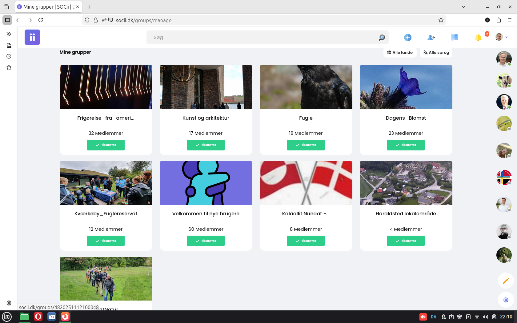 Nu har jeg snart været på Socii et år. Der var vist 865 medlemmer da jeg startede. Jeg har lavet 8 grupper: Frigørelse_fra_amerikanske_techvirksomheder (32 medlemmer), Dagens-Blomst (23 medlemmer), MitNatur (23 medlemmer), Fugle (18 medlemmer), Kunst og Arkitektur (17 medlemmer), Kalallit_Nunaat_Grønland 8(medlemmer) og Haraldsted Lokalområde (4 medlemmer). I er velkomme til at ak´bonnere på dem og lægge opslag op!Nu har jeg snart været på Socii et år. Der var vist 865 medlemmer da jeg startede. Jeg har lavet 8 grupper: Frigørelse_fra_amerikanske_techvirksomheder (32 medlemmer), Dagens-Blomst (23 medlemmer), MitNatur (23 medlemmer), Fugle (18 medlemmer), Kunst og Arkitektur (17 medlemmer), Kalallit_Nunaat_Grønland 8(medlemmer) og Haraldsted Lokalområde (4 medlemmer). I er velkomme til at ak´bonnere på dem og lægge opslag op!1 Comments 0 Shares 363 Views