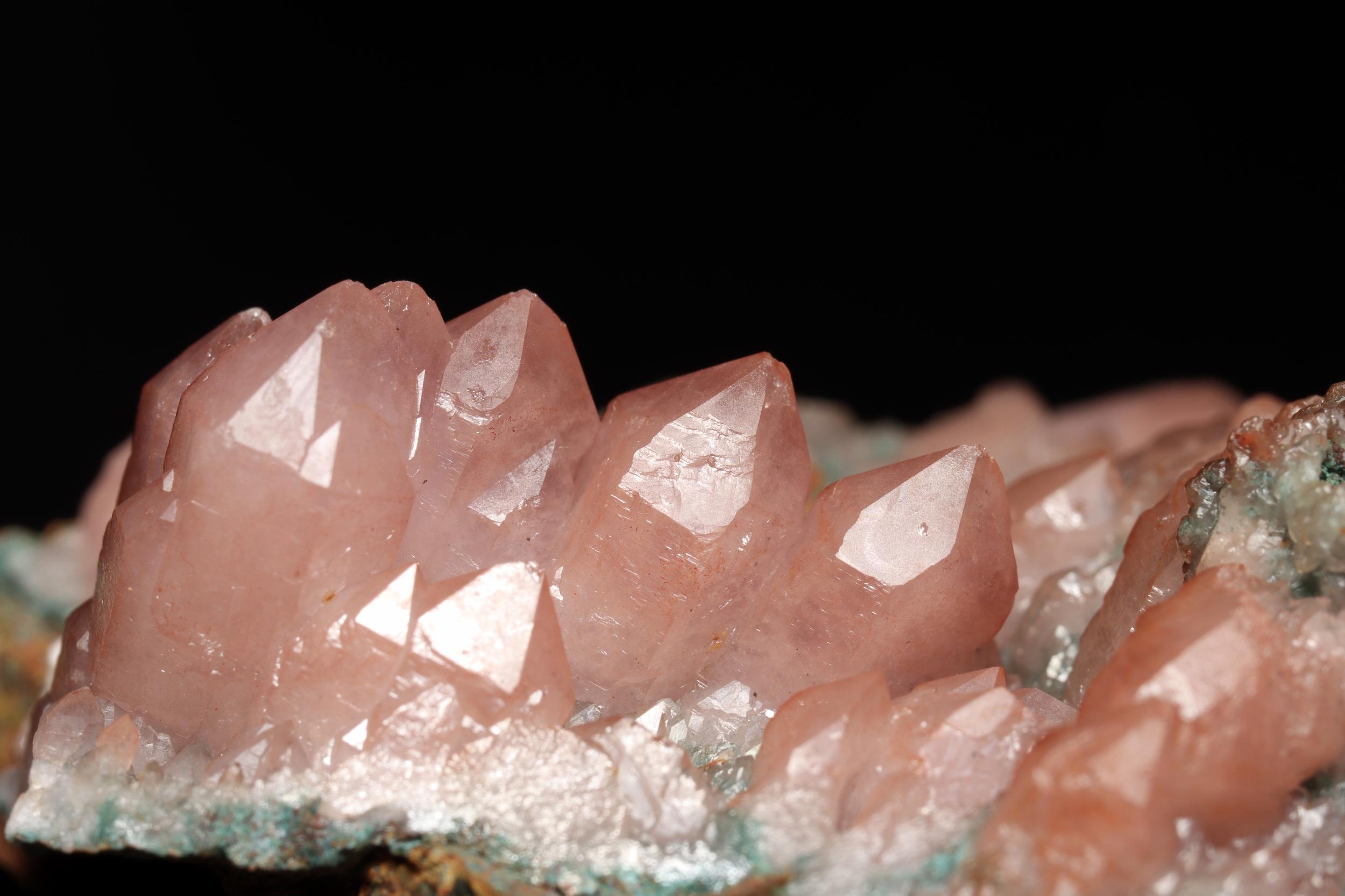 Mineral: Rosenkvarts som er en variant af Kvarts Kvarts er et eksempel på et trigonalt krystalsystem. Andre eksempler på trigonale krystaller er Calcit, Turmalin og Safir. ![]() |