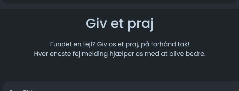 I finder den også oppe i menuen ved Jeres profilbilleder under punktet "Giv et praj".Vi arbejder os fremad med den nye kerne til SOCii - så hav lidt tålmodighed. Og så en lille bøn - lad være med at skrive kommentar omkring fejl og mangler i andres kommentarfelter eller på Jeres egne profiler med et opslag. INGEN kan holde styr på hvad Jeres oplevelser er når I bare slår det op hulter til bulter.... vi har fået tilføjet en funktion til indrapportering af fejl, ønsker og mangler: https://socii.dk/bugtrack I finder den også oppe i menuen ved Jeres profilbilleder under punktet "Giv et praj".0 Kommentarer 0 Delinger 542 Visninger