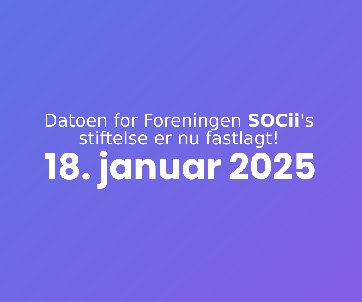 Så er det besluttet, datoen for stiftelse af Foreningen SOCii er fastlagt: d. 18. januar 2026. Foreningen skal drive platformen SOCii, så platformen bliver et sted der ikke bliver styret af en virksomhed eller en enkelt person.