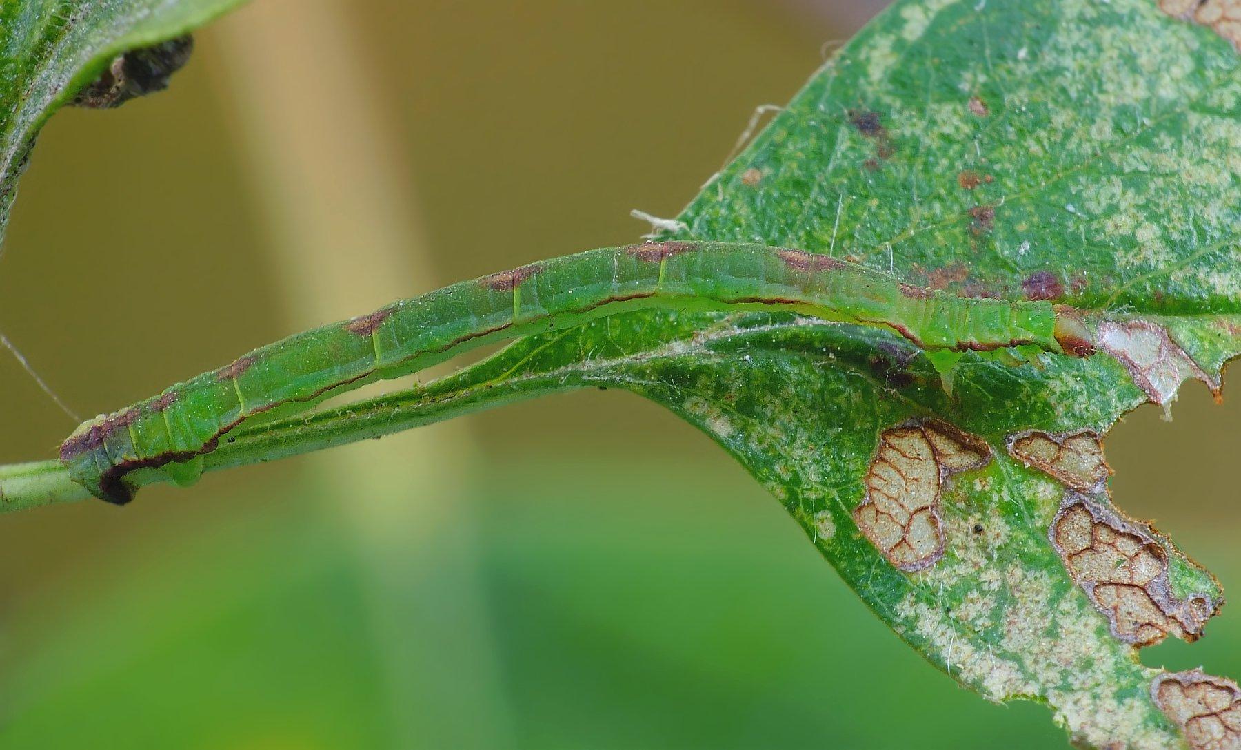 Dagens sommerfuglelarve: Stregdværgmåler - Eupithecia exiguata Længde: 19 mm - på Tjørn, Grenå plantage i går