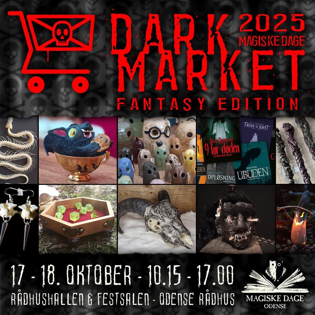 • Fredag og lørdag i den kommende uge (17.18. oktober 2025) er Dark Market at finde i Rådhuset i Odense som en del af Magiske dage - og igen i år har 2 Feet Entertainment en stand der, hvor jeg vil være at finde, samt et udvalg af forlagets bøger.