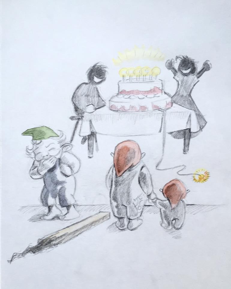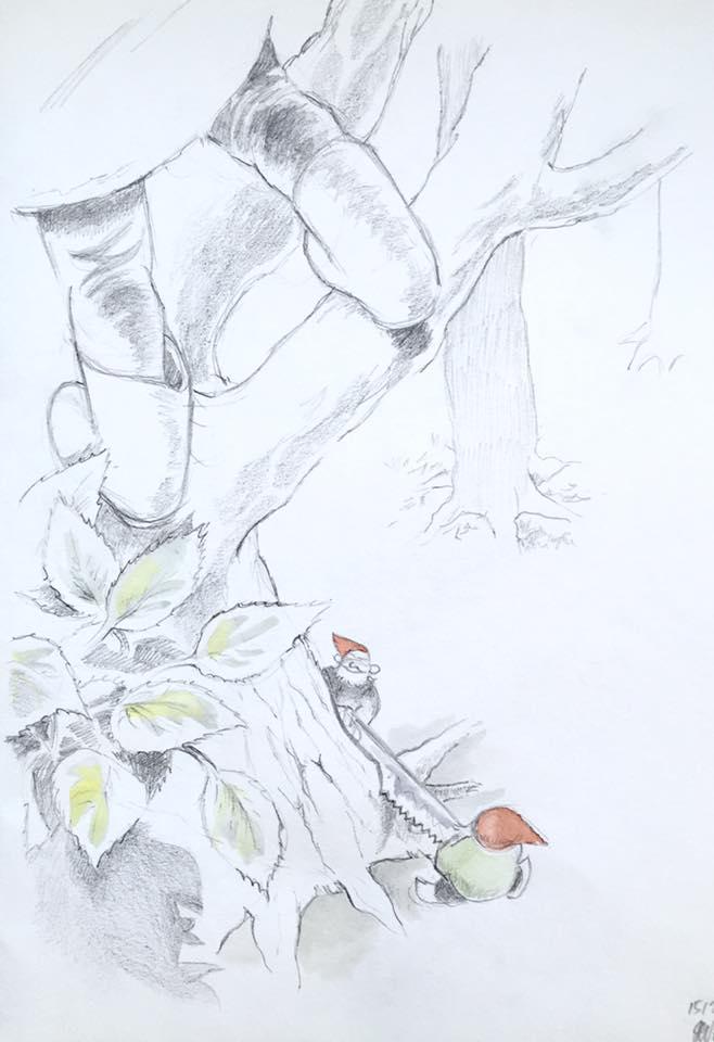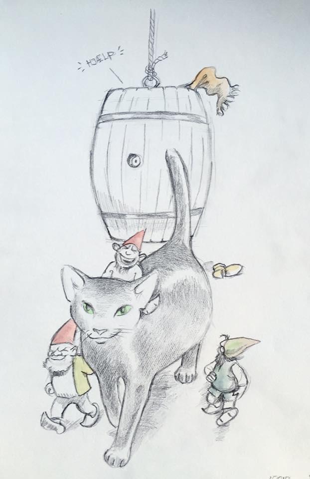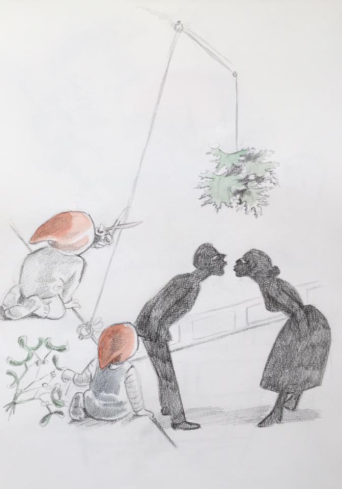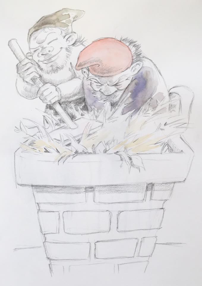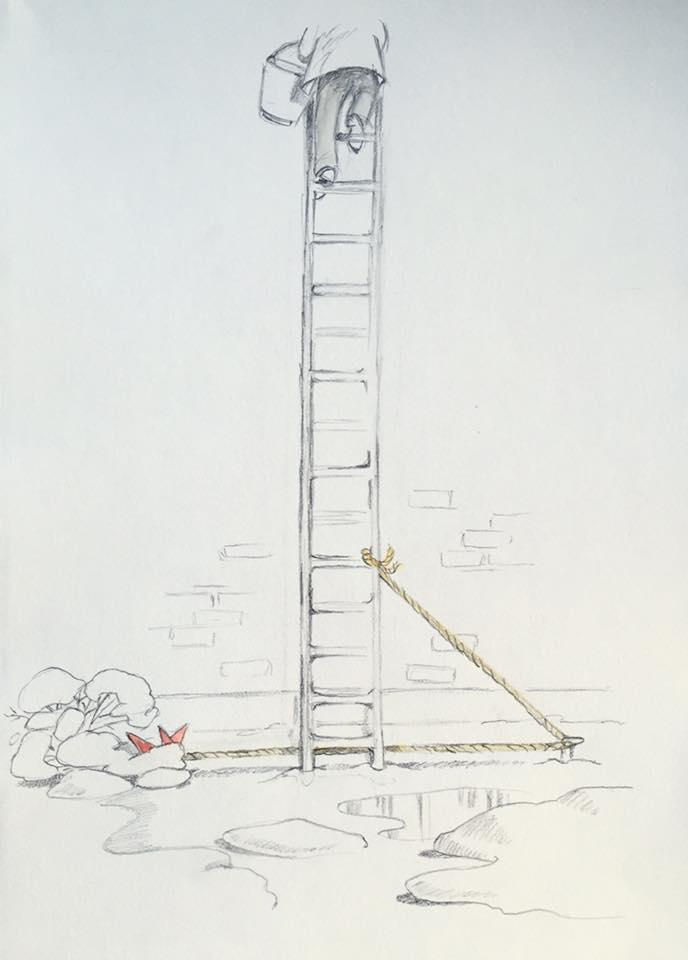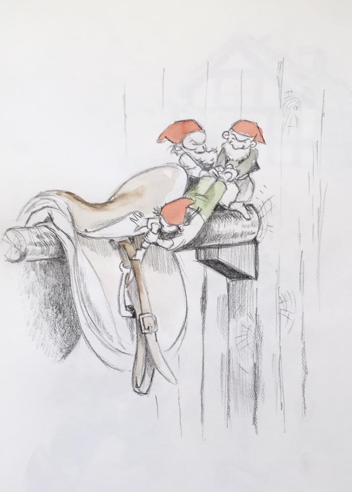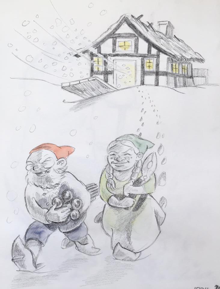 12. december. Hvilken nisse vil ikke hjælpe bondemanden med stigen? ;-) #julekalender2025 #julen2025 #nisser #illustration #art